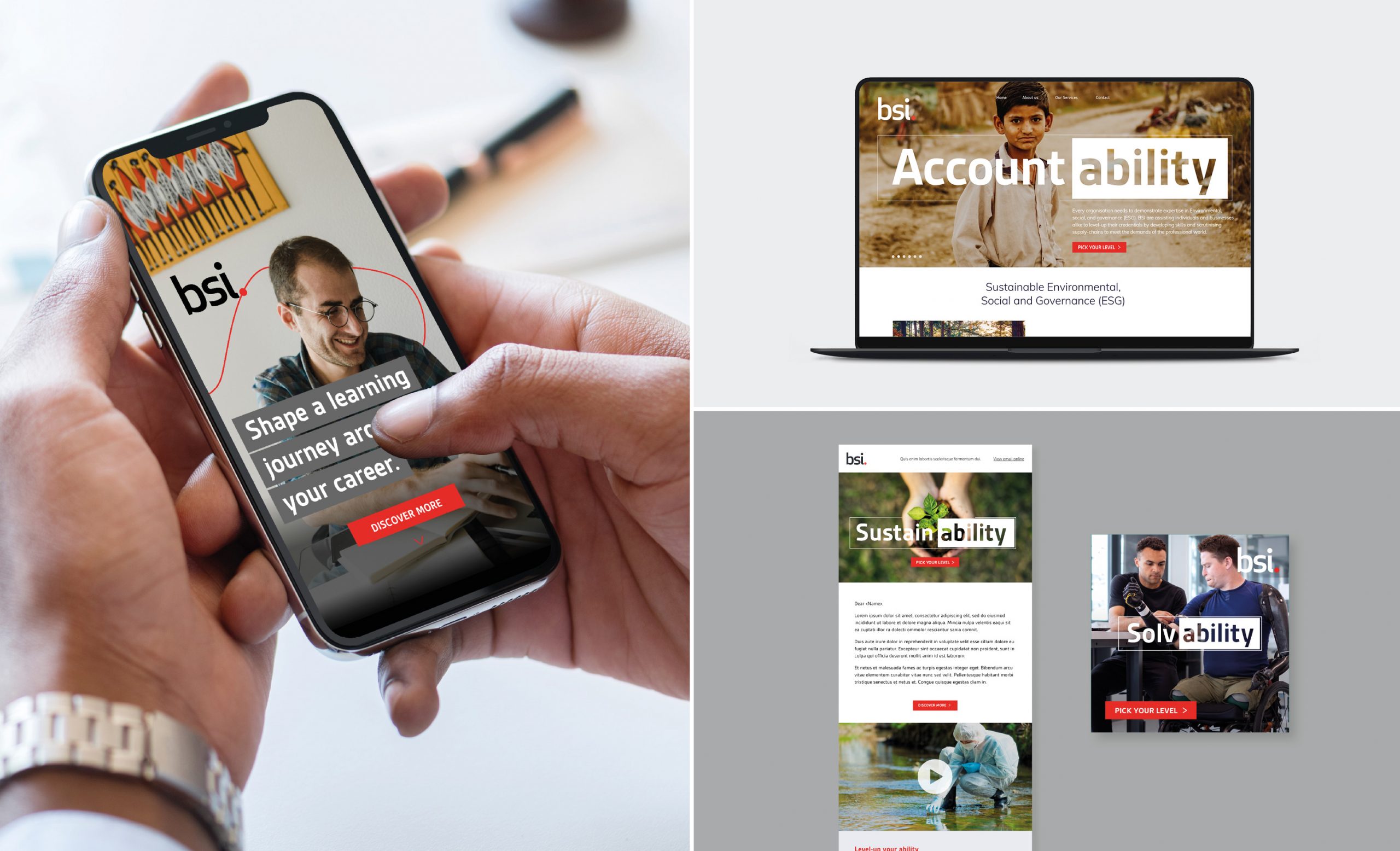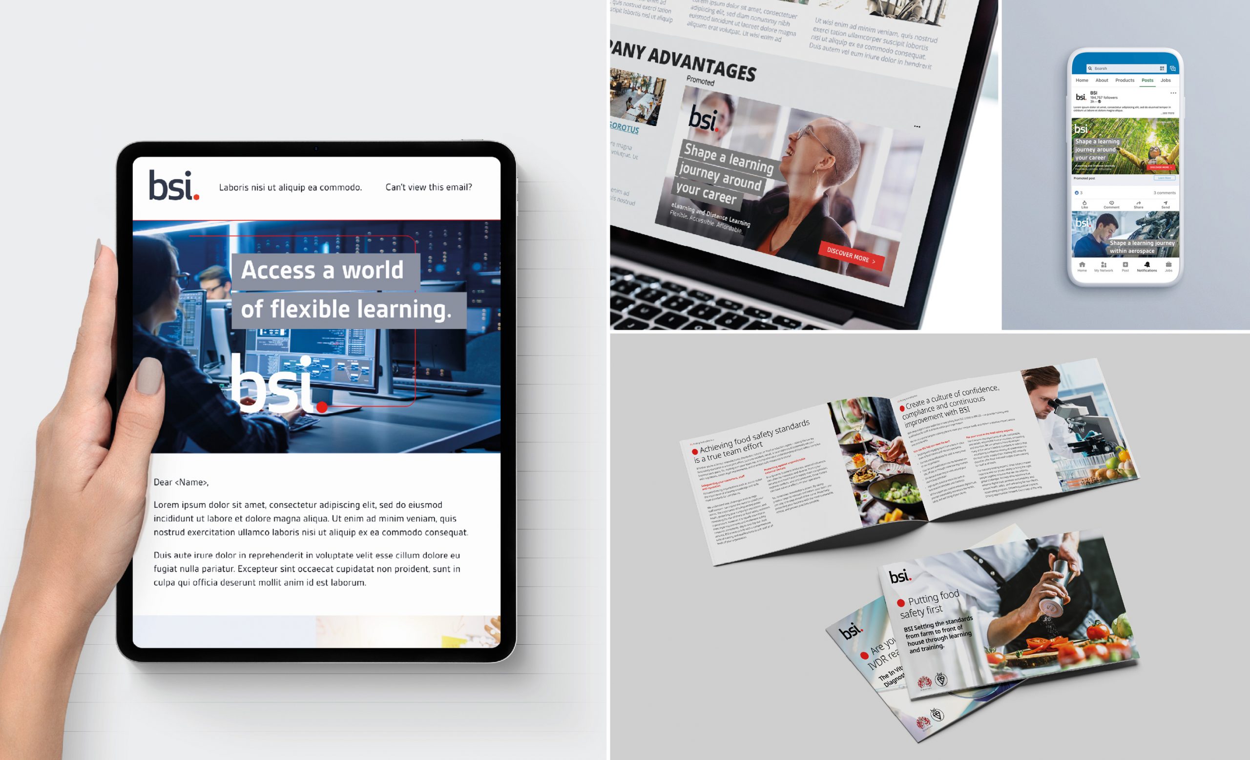 The BSI creative projects centred around campaigns that utilised emotive headline copy that was flexible enough to be nuanced for various targeted business sector audiences to promote BSI’s education products.