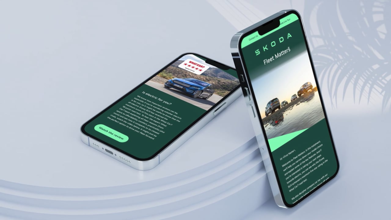 This result was a bright visual aesthetic to align with Škoda’s jargon-free and approachable tone of voice. From dynamic emails to video-based social media assets, every piece was meticulously designed to enhance sales potential to appeal to a B2B audience.